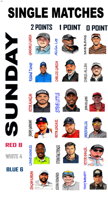 their 2023 victory. As Sunday singles matches began, the situation became tense, especially since the Red team was short two players. This led to a potential three-way tie at 16 points each, which