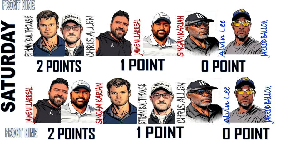 White team initially leading after Saturday's matches with 10 points, followed by the Red team with 8.5 points, and the defending Blue team at 5.5 points. Historically, the White team excels on